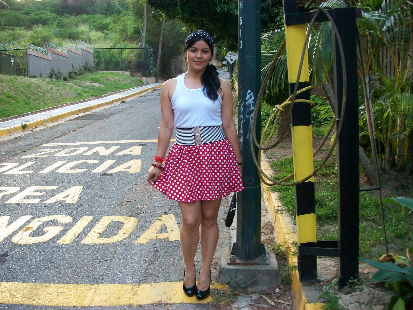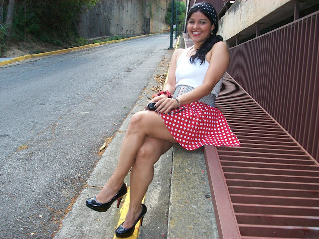 Este look lleva como protagonista la falda de lunares, desde que ví la tela en la tienda soñé hasta como la iba a usar (Aquí como hacerla) me encantan los lunares y con rojo mucho más, mantuve el resto del look básico para destacar la falda.