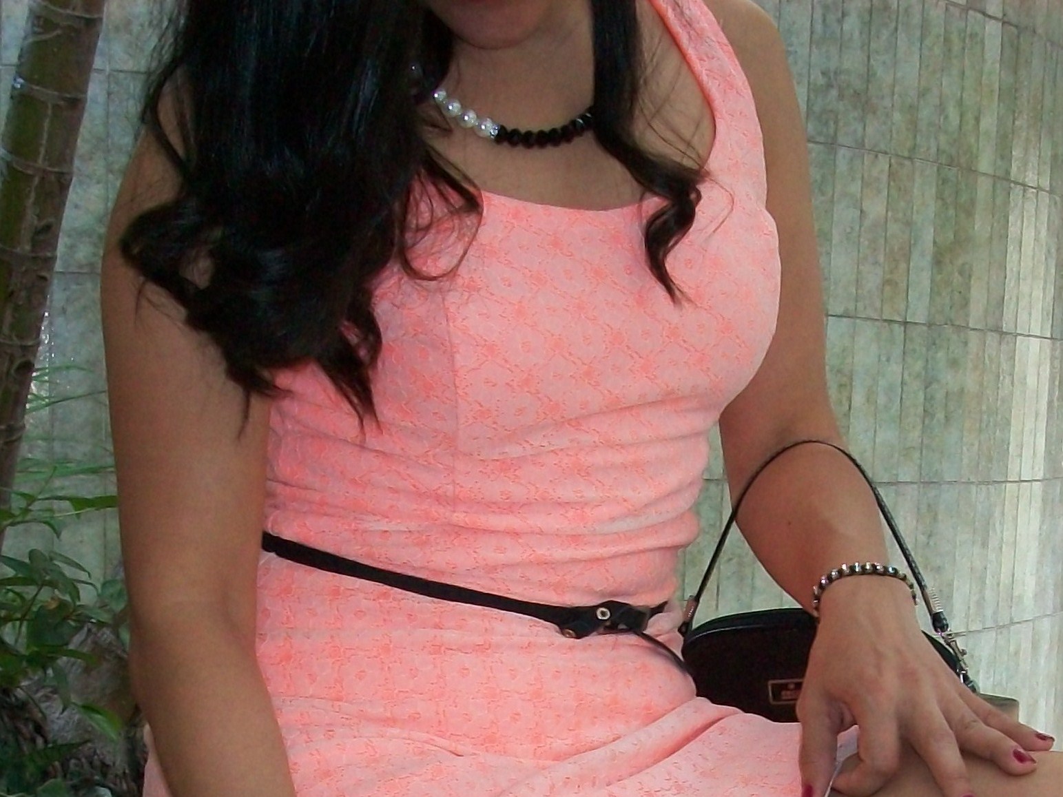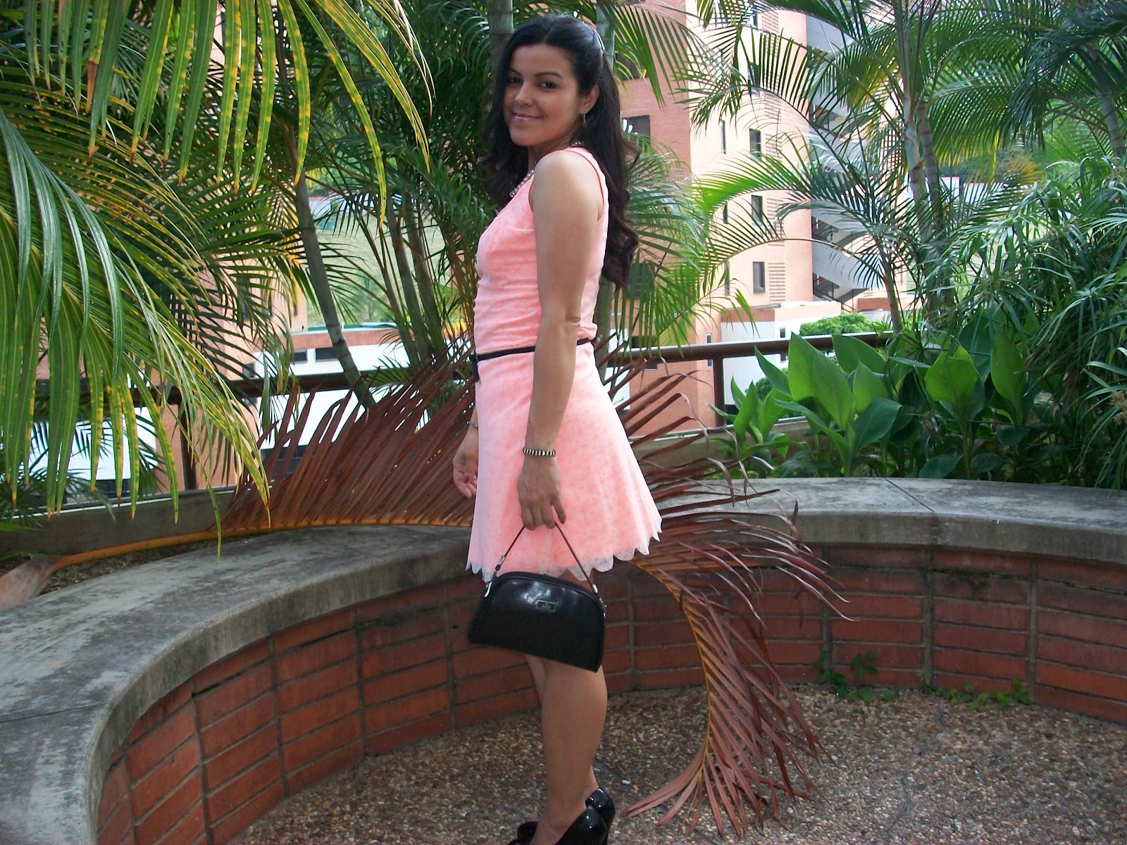 Este look es para una reunión tarde/noche, un vestido que hice con una tela coral bastante fluorescente y para bajarle el tono le coloqué encaje color crema encima, le puse accesorios negros casi en su totalidad para que no se viera tan informal; me sentí muy cómoda al usarlo y divertida con el color! Y ustedes, como usan los neones?